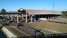 L'ancien bâtiment de la gare locale et le terminal conteneurs nord.
