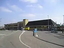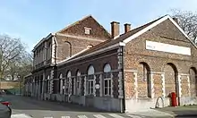 La gare en bois, construite en 1880-1881, a survécu au saccage de la ville en 1914 mais a été incendiée en 1940 pour empêcher son utilisation par les Allemands. L'architecte Josse Van Kriekinge est commissionné pour réaliser un nouveau bâtiment, de style moderniste (nouvelle objectivité), comportant deux ailes asymétriques, une façade en briques jaunes et un toit à deux pentes sur une des ailes latérales[5]. Achevé en 1943, c'est un des rares bâtiments de gare en dur réalisé en Belgique sous l'occupation ; il a été désigné comme patrimoine architectural (bouwkundig erfgoed) en 2010[5].