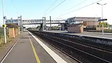 Une passerelle, avec un ascenseur et deux escaliers, permet la traversée des voies et l'accès aux quais[7].