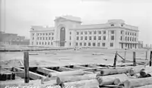 La gare est construite par la firme de Pratt and Ross en 1918 pour le chemin de fer Canadian Northern Railway en style Beaux-Arts[4],[5].