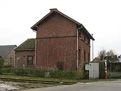 Une grande maison de garde-barrière de type État belge avec une aile à l'arrière se trouve à proximité de l'emplacement de la gare disparue.