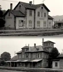 La gare de 1864 a été remplacée par une gare à un emplacement voisin en 1904. Les deux bâtiments de gare sont reconvertis en logements.