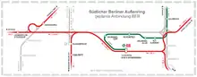 La gare se trouve sur les lignes 9 et 45 du S-Bahn de Berlin. Elle est également desservie par les lignes régionales suivantes : FEX, Berlin Hbf – Berlin Gesundbrunnen – Berlin Ostkreuz - Aéroport de Berlin ; RE 7, Dessau – Bad Belzig – Michendorf – Berlin – Aéroport de Berlin – Wünsdorf-Waldstadt ; RB 14, Nauen – Falkensee – Berlin – Aéroport de Berlin ; et RB 22, Berlin – Potsdam – Golm – Saarmund – Aéroport de Berlin - Königs Wusterhausen.