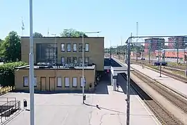 Bâtiment voyageurs et entrée de la gare (2017). | |