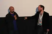 Gaspar Noé (gauche) répondant aux questions à propos de son film Enter the Void au Festival international du film de Toronto en 2009.