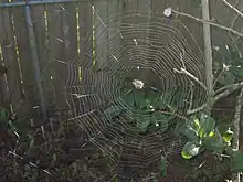 Sa toile mesure une trentaine de centimètres de diamètre[8]. Orbiculaire, elle peut être « décorée » de flocons soyeux et est pourvue d'un moyeu ouvert où la femelle s'installe sans s'y suspendre, contrairement aux Micrathena.
