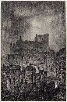 - Le vieil hôtel de Ville d'Amiens, début XXème siècle, 34,3 X 23,6 cm, eau-forte ?, Chalcographie 6776 G/ Recto.