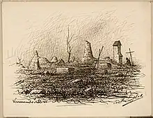 - La sucrerie (Souchez, Pas-de-Calais), 1915, 16 x 25 cm, craie, crayon, fusain et sanguine, OR F3 000505.