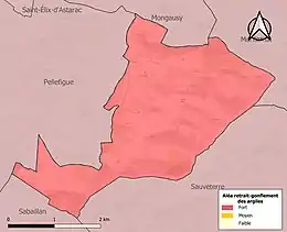 Le retrait-gonflement des sols argileux est susceptible d'engendrer des dommages importants aux bâtiments en cas d’alternance de périodes de sécheresse et de pluie. La totalité de la commune est en aléa moyen ou fort (94,5 % au niveau départemental et 48,5 % au niveau national). Sur les 48 bâtiments dénombrés sur la commune en 2019, 48 sont en aléa moyen ou fort, soit 100 %, à comparer aux 93 % au niveau départemental et 54 % au niveau national. Une cartographie de l'exposition du territoire national au retrait gonflement des sols argileux est disponible sur le site du BRGM[21],[Carte 3].