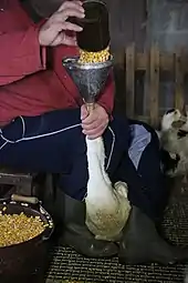 Le gavage des oies et des canards est une technique d'élevage qui consiste à engraisser des animaux par une alimentation calorique et surabondante. Pratiquée depuis l'Égypte ancienne, elle est encore utilisée de nos jours dans le but de produire du magret, du confit et du foie gras.