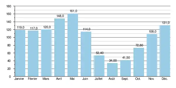 Aux étiages, le VCN3 peut chuter jusque 12 m3/s, ce qui ne peut cependant être qualifié de sévère.
