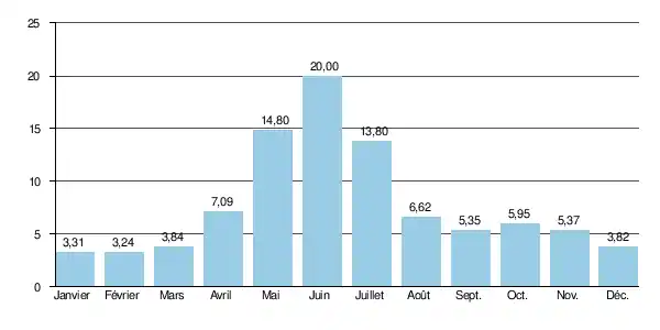 Le module y est de 7,79 m3/s.