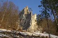 - (en) Connie Meister, « Front view of the rock formation Bruckfels with the Geißenklösterle », sur le site du Comité du patrimoine mondial, Unesco, (consulté le ).