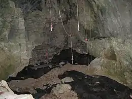Les investigations archéologiques entreprises durant les années 1970, 1980 et 1990, puis 2000 et 2010, ont été pratiquées dans un espace dégagé et situé latéralement à la voûte. Un couloir, obstrué par des sédiments et contigüe à cet espace a été découvert mais non-encore fouillé[4]. Les chercheurs estiment que ce couloir, n'ayant pas encore été exploré et fouillé, contiendrait une importante quantité de gisements parfaitement conservés dans leur état d'origine[4]. Ces éléments archéologiques seraient attribuables à une période s'échelonnant entre le Paléolithique moyen (en particulier culture du Moustérien) et le Mésolithique[4].