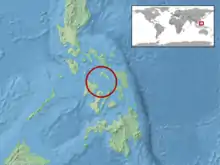 Cette espèce est endémique des Philippines[1]. Elle ne se rencontre que sur les îles South Gigante Island et North Gigante Island au Nord-Est de Panay[2].