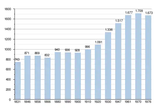 - Sources : INS, Rem. : 1831 jusqu'en 1970 = recensements, 1976 = nombre d'habitants au 31 décembre.