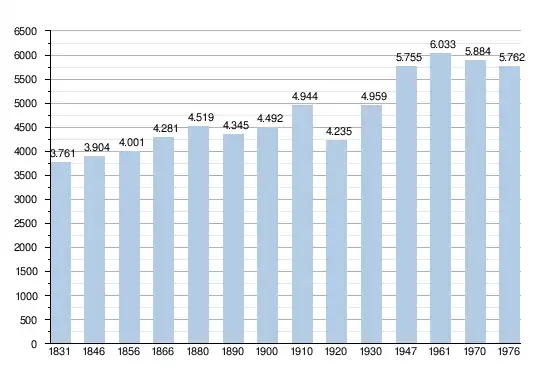 - Sources : INS, Rem. : 1831 jusqu'en 1970 = recensements, 1976 = nombre d'habitants au 31 décembre[2].
