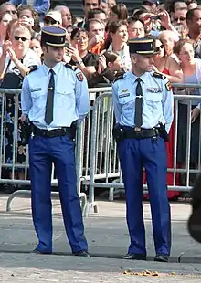 La Gendarmerie nationale française[alpha 1] est une force armée française chargée de missions de police, en particulier dans les zones rurales et périurbaines et sur les voies de communication[3]. Elle est sous la tutelle du ministère de l'Intérieur et des Outre-mer[4] , mais reste placée sous l'autorité du ministère des Armées pour l'exécution de ses missions militaires.