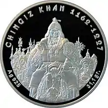 En 1206, un nouveau qüriltaï le proclame « Empereur » : il reçoit en effet le titre de Tchingis Khagan (« Souverain océanique », c'est-à-dire « Souverain universel »[9],[note 4]. C'est à partir de cette date que Temüjin est connu sous la dénomination de « Gengis Khan », qui est en fait un titre (comme Augustus, « Auguste » pour Octavien à Rome à partir de 27 av. J.-C.).