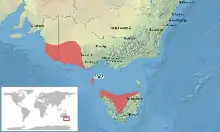 Cette espèce est endémique du Sud-Est de l'Australie[1],[2]. Elle se rencontre dans le sud-ouest du Victoria, dans l'extrême Sud-Est de l'Australie-Méridionale, sur King Island et en Tasmanie.