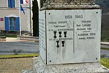 - Citation à l’ordre du corps d’armée, du : « Chef de section qui s’est déjà distingué dans les combats du en forêt d’Ecouves. Toujours en tête aux endroits les plus dangereux, a magnifiquement entrainé derrière lui son unité qui a détruit plusieurs anti-chars et un canon Flack. »