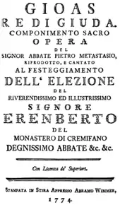 - Il Siroe, Rè di Persia (1748) Livret de Metastasio.