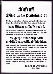 En avril 1919, c'est au tour de Magdebourg de se soulever, avec le conseil central des soldats des IVe, XVIe et XXIe corps d'armée qui démettent leurs officiers et appellent à renverser le gouvernement, pour créer une république des conseils. Une grève générale s'ensuit et des arrestations de militaires et d'hommes politiques ont lieu dans les rues de la ville. Des combats de rue violents ont lieu entre partisans des révolutionnaires et troupes gouvernementales. Le gouvernement fait parvenir un ultimatum exigeant la libération des prisonniers et envoie à nouveau les corps francs de Maercker qui ramène l'ordre rapidement.