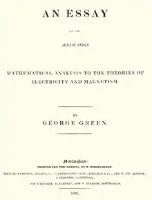 Cet essai introduit plusieurs concepts importants, parmi lesquels un théorème similaire au théorème de Green, une idée des fonctions potentielles telles qu'elles sont maintenant utilisées en physique et l'idée de ce qui est maintenant appelé les fonctions de Green.