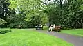 Jardin de George Square et bibliothèque universitaire en arrière plan