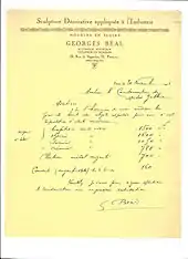 - Une lettre écrite par Georges Béal avec un en-tête de son atelier de la rue de Bagnolet témoigne de sa participation au musée Galliéra à l'Exposition d'Art moderne, archives palais Galliéra, musée de la Mode de la ville de Paris[réf. incomplète].