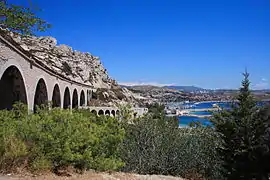 À partir de 1907, Georges Braque séjourne dans le Midi de la France en compagnie de Othon Friesz et, après avoir longuement médité sur l'usage de la ligne et des couleurs de Paul Cézanne, il produit un grand nombre de toiles relatives aux paysages de l'Estaque, presque toutes en plusieurs versions : Le Viaduc de l'Estaque (1907)[R 1], Le Viaduc de l'Estaque (1908), Route de l'Estaque (1908), Terrasse à l'Estaque (1908), La Baie de l'Estaque (1908)[R 2], Les Toits d'usine à l'Estaque (1908), Chemin à l'Estaque (1908), Paysage à l'Estaque (1908).