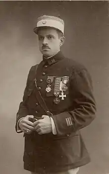 « Officier d’une bravoure remarquable, quatre fois blessé, est revenu sur le front à peine guéri, s’est fait remarquer le en portant vigoureusement sa compagnie à l’attaque des positions ennemies. Le a contribué à l’enlèvement d’une tranchée et d’un village fortement défendu. A repoussé la nuit suivante, une contre-attaque ennemie. »