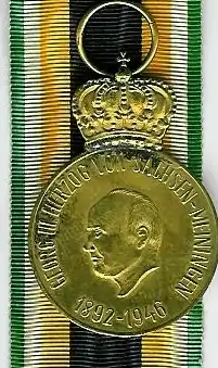 Son grand-père, le duc Georges II de Saxe-Meiningen-Hildburghausen s'éteint le , trois jours avant l'Attentat de Sarajevo qui provoquera un mois plus tard la Première Guerre mondiale. L'oncle du prince Georges devient duc régnant sous le nom de Bernard III de Saxe-Meiningen. Celui-ci avait épousé en 1879 la princesse Charlotte de Prusse et était le beau-frère du Kaiser Guillaume II. Le prince Georges est considéré comme l'héritier du trône. Le , alors que la guerre éclate, son autre sœur, la princesse Adélaïde de Saxe-Meiningen épouse le prince Adalbert de Prusse, fils cadet du Kaiser et officier de marine.