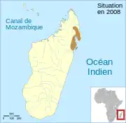 Aire de répartition de Gephyromantis leucomaculatus.