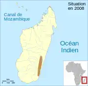 Cette espèce est endémique de Madagascar. Elle se rencontre entre 400 et 900 m d'altitude dans le Sud-Est de l'île, dans le parc national de Ranomafana et dans les Chaînes anosyennes[1],[2].