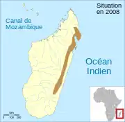 Cette espèce est endémique de Madagascar. Elle se rencontre du niveau de la mer jusqu'à 850 m d'altitude du mont Marojejy jusqu'à massif d'Andringitra, ainsi que sur les îles de Sainte-Marie et Nosy Mangabe[1],[2].