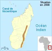 Aire de répartition de Gephyromantis ventrimaculatus.