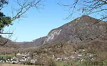 Le village ancien est blotti au pied de la montagne, entre le Castera (petite colline) et le cône d'éboulis du ruisseau Arruau, tandis que des constructions plus récentes sont éparpillées dans la plaine. Le sud de la commune est dominé par les ruines du château de Geu (Castet Gelos).