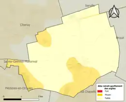 Le retrait-gonflement des sols argileux est susceptible d'engendrer des dommages importants aux bâtiments en cas d’alternance de périodes de sécheresse et de pluie. 23,2 % de la superficie communale est en aléa moyen ou fort (52,8 % au niveau départemental et 48,5 % au niveau national). Sur les 136 bâtiments dénombrés sur la commune en 2019, 77 sont en aléa moyen ou fort, soit 57 %, à comparer aux 70 % au niveau départemental et 54 % au niveau national. Une cartographie de l'exposition du territoire national au retrait gonflement des sols argileux est disponible sur le site du BRGM[18],[Carte 2].