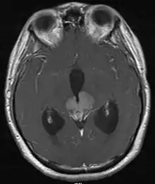 Le germinome pinéal est une forme rare de tumeur cérébrale, touchant principalement les adolescents de sexe masculin. Elle se caractérise par une lésion siégeant le plus souvent autour du troisième ventricule cérébral et touche souvent la glande pinéale elle-même, ainsi que le compartiment supra-sellaire. En fonction de la zone touchée, les symptômes peuvent comprendre l'hydrocéphalie, des troubles visuels (diplopie par exemple), acouphènes, et anomalies endocriniennes. Leur taux de survie à 10 ans est de plus de 90%[1]