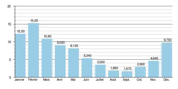 À l'étiage, le VCN3 peut chuter jusqu'à 0,300 m3 en cas de période quinquennale sèche, ce qui, quoique assez bas, n'est pas vraiment très sévère.