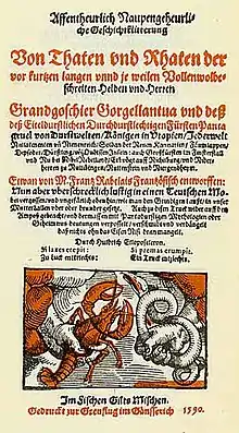 Paru en 1575, Affenheurliche und ungeheurliche Geschichtschrift von Leben ratten und Thaten der vor Langerweilen Vollenwohlbes chaiten Helder und Henn Grandgusier Gargantua und Pantagruel est un roman satirique de Johann Fischart réédité à partir de 1582 sous le titre plus connu de Affenteurliche Naupengeheurliche Geschichtklitterung[1],[note 1] et remanié une troisième fois par l'écrivain en 1590.