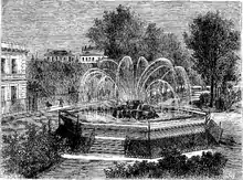 Au XIXe siècle, avec une augmentation globale de la population, l’État met en œuvre une politique de grand travaux visant une amélioration générale du plan sanitaire dans la capitale[5]. Dès 1802, Napoléon Bonaparte veut améliorer l’alimentation en eau à Paris et lance le projet de construction du canal de l’Ourcq. Celui-ci est achevé en 1822 et permet d’acheminer de l’eau dans les villes plus au nord de Paris. Ce canal est à l’origine d’une forte augmentation des ressources en eau à disposition du service des Eaux. Le canal de l’Ourcq alimente de nombreuses fontaines à Paris. Parallèlement, en 1808 est achevé le bassin de la Villette et en 1824 le canal est mis en exploitation. Ces aménagements augmentent la quantité d’eau produite et cette quantité est multipliée par 10 entre 1800 et 1825. Avec l’augmentation du nombre de fontaines, la consommation journalière d’eau passe de 28 à 110 litres d’eau par personne entre 1830 et 1850. Dès 1807 est créé le service des eaux et canaux pour la gestion des eaux de Paris. Ce service est confié à des ingénieurs des Ponts et Chaussées.