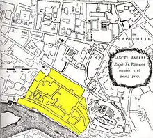 - Cinq des portes s'appellent Rua, Regola, Pescheria, Quattro Capi e Ponte, Fonte (it) Costantino Maes, Curiosità romane, t. II, Rome, Stabilimento tipografico dell'editore E. Perino, , p. 119