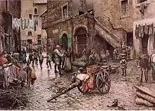 La vie dans le ghetto romain est d'une pauvreté écrasante, en raison des restrictions sévères imposées aux Juifs. Ils ne peuvent exercer que des emplois non qualifiés, comme chiffonniers, brocanteurs[4],[Note 5] ou poissonniers. Ils sont autorisés à être prêteurs sur gage[Note 6], ce qui est interdit aux chrétiens.