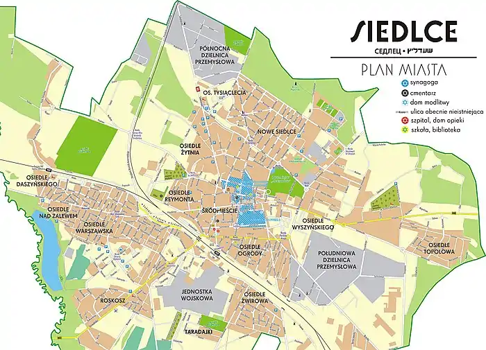 - Jewish Virtual Library, Siedlce, Poland. Virtual Jewish World. Source: Encyclopaedia Judaica; Sefer Yizkor li-Kehillat, Siedlce li-Shenat Arba Esreh le-Ḥurbanah (Yid., 1956). Retrieved 30 October 2015.