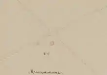 Plan cadastral de 1850 provenant des archives départementales de la Meuse[4] indiquant la présence des vestiges du gibet de Creuë au sommet de la colline du Meussaumont. On observe les trois éléments dont le cabaret représenté à la croisée des chemins par un cercle. Notons aussi l'absence de nomination du site.