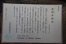 - (en) Cet article est partiellement ou en totalité issu de l’article de Wikipédia en anglais intitulé « Gichū-ji » (voir la liste des auteurs).