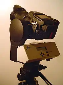 Un GigaPan muni d'un appareil photographique.