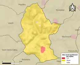 Le retrait-gonflement des sols argileux est susceptible d'engendrer des dommages importants aux bâtiments en cas d’alternance de périodes de sécheresse et de pluie. 99,6 % de la superficie communale est en aléa moyen ou fort (67,7 % au niveau départemental et 48,5 % au niveau national). Sur les 154 bâtiments dénombrés sur la commune en 2019, 154 sont en aléa moyen ou fort, soit 100 %, à comparer aux 72 % au niveau départemental et 54 % au niveau national. Une cartographie de l'exposition du territoire national au retrait gonflement des sols argileux est disponible sur le site du BRGM[21],[Carte 2].